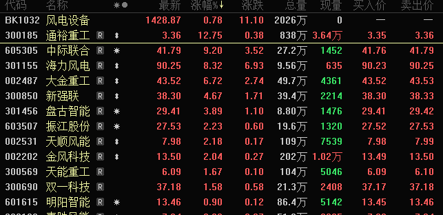 风电板块涨幅居前,通裕重工涨超10%,川润股份涨停,海力风电、大金重工、新强联等跟涨。
