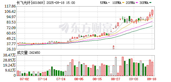长飞光纤(601869)尾盘快速拉升,并再度封死涨停,斩获3天2板。公司盘后发布公告称,公司股票于2025年9月16日至18日连续三个交易日收盘价格涨幅偏离值累计超过20%,属于股票交易异常波动情形。