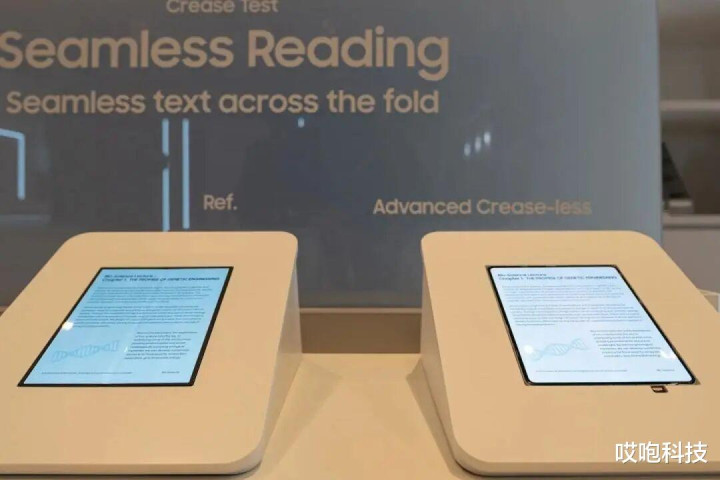 作为苹果的屏幕供应商,三星被要求制造一块无折痕的屏幕面板。而三星也是很争气,造出来的面板据说“让苹果非常满意”。在最近的 CES 展会上,三星显示(Samsung Display)展出了一块无折痕的折叠面板,不管是从正面还是侧面看,都像是一块普通屏幕:
